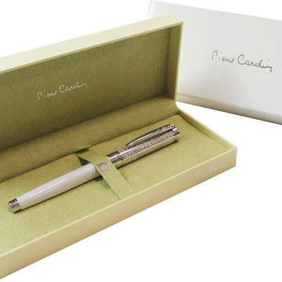 사용방식:캡분리타입. ■ 바디: 메탈에 고광택 화이트락카도장 ■ 탑부 원형P로고 장식 ■ 캡부: 에칭공법을이용하여 직물무늬를냄 ■ 펜촉: 주얼리문양 18KGP 투톤 F Nib ■ 레이저(골드색상),실크,패드 인쇄가능 |